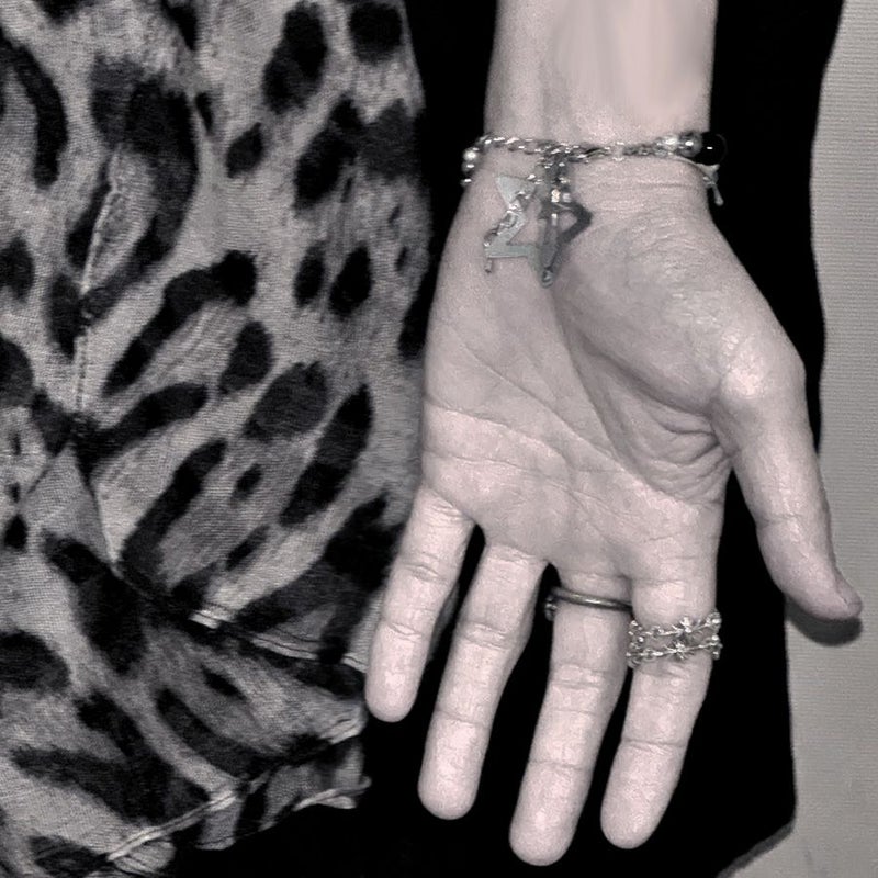 ・シルバー×ブラックを基調に、クロスやスパイクをミックスしたインパクト抜群のデザインのブレスレットと、星ヘアピンがセットになったアイテム。