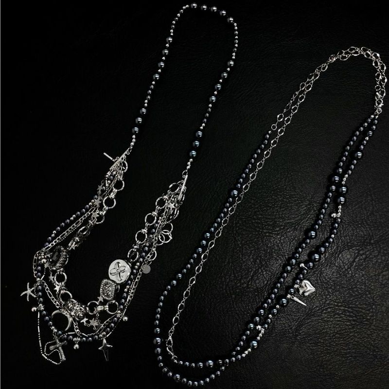 NOVESSEL【ノベセル】多連マルチデザインネックレスが登場。2つのネックレスがセットになっているアイテム。 重量感があり、細かなモチーフも魅力です。 ボールチェーン、クロス、三日月、ブラックダイヤモンドにハート、スタッズ… 1つで3WAYに楽しめる、バリエーションに富んだ推しアイテムです。 ※モデル画像は照明などの影響により実際の商品と異なる場合がございます。 ユニセックスとしても着用可能ですので、是非お試しください!