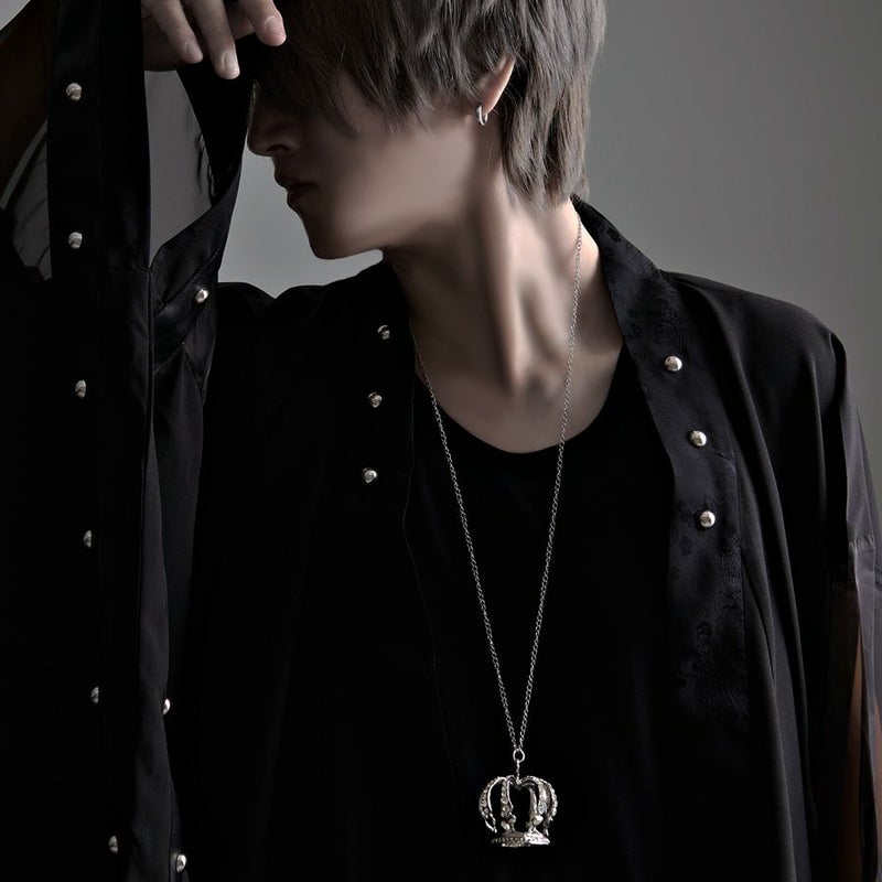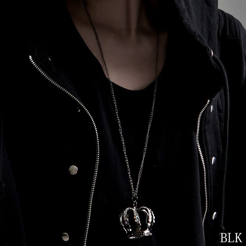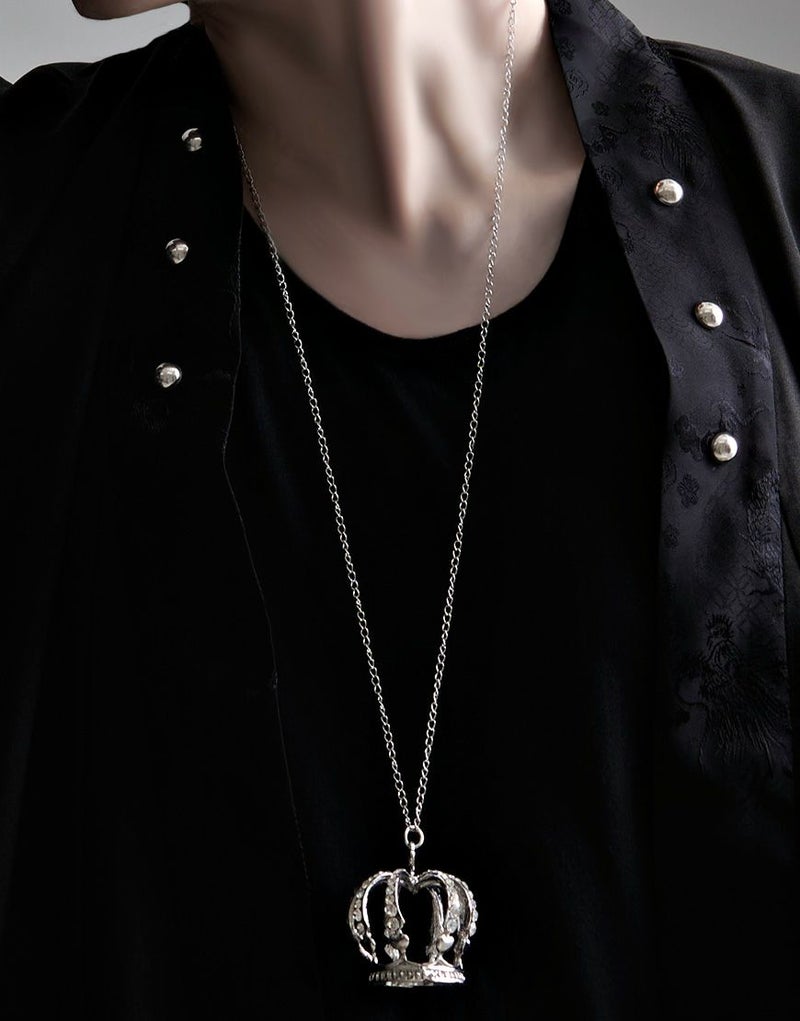 NOVESSEL【ノベセル】からビッグクラウンネックレスが登場。 ビッグサイズのクラウンモチーフが目をひくデザインネックレス。 ストリート、ロック、ゴシックスタイルをはじめ様々なスタイリングに相性抜群◎ ユニセックスとしても着用可能ですので、是非お試しください! ※モデル画像は照明などの影響により実際の商品と異なる場合がございます。