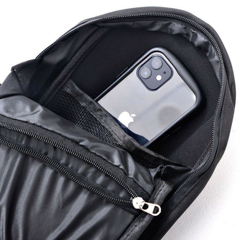 Selectからサイバーボディバッグの登場です。近未来を意識した立体感溢れるデザインを組み込んだボディバッグとなり、ショルダーベルトにクッション性のある部分を付属し、長さ調整もしやすくなっています。収納はZIPファスナー付きのメインポケットがあり、内側にもファスナー付きポケットとメッシュ地のポケットもございます。見た目より収納力もあって非常に使いやすくなっています。 ※モデル画像は照明などの影響により実際の商品と異なる場合がございます。