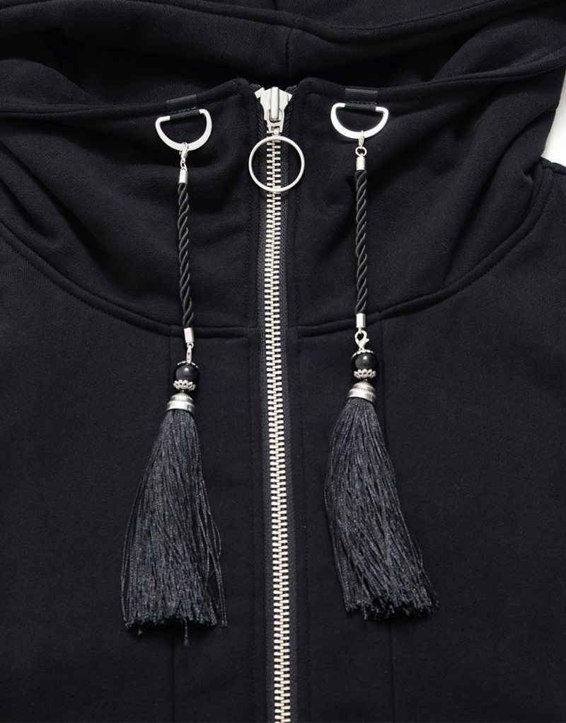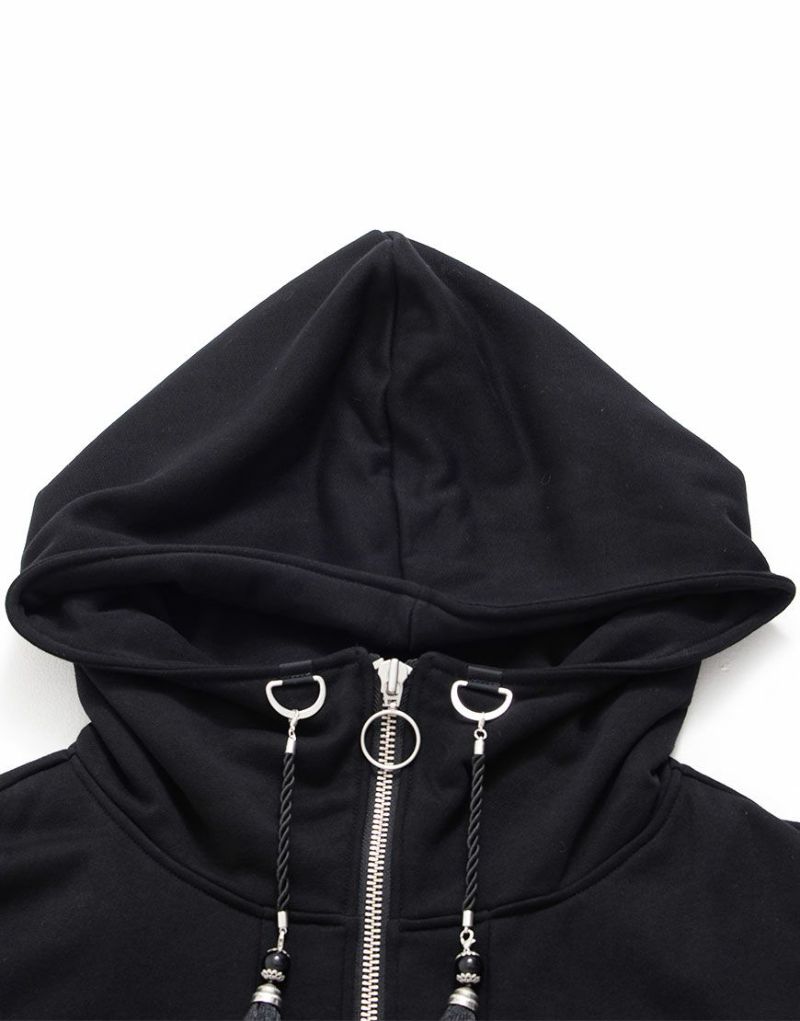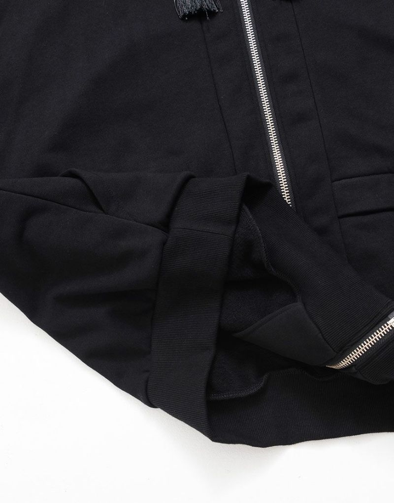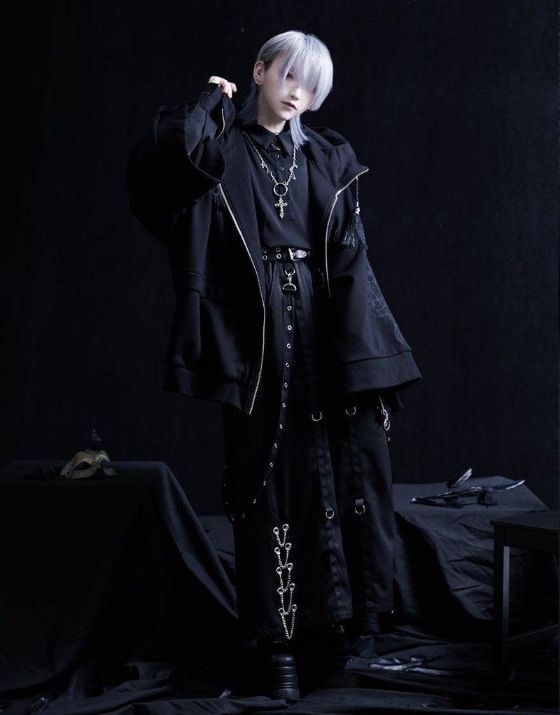 ililil【イルイルイル】より【蛇昇華界】着物パーカーが登場です。 肩から袖口にかけて広がっている袖に、 蛇と華の刺繍が施されたジップアップパーカー。 首元にはDカンにタッセルのついた豪華なデザイン。 ハイネックになっているので開けたり閉めたりで印象変化も楽しめます。 程よいゆとりのあるサイズ感で着やすさも抜群です。 #ユニセックス #パーカー #フーディー #ブラックコーデ #オーバーサイズ #ジップアップ #ハイネック