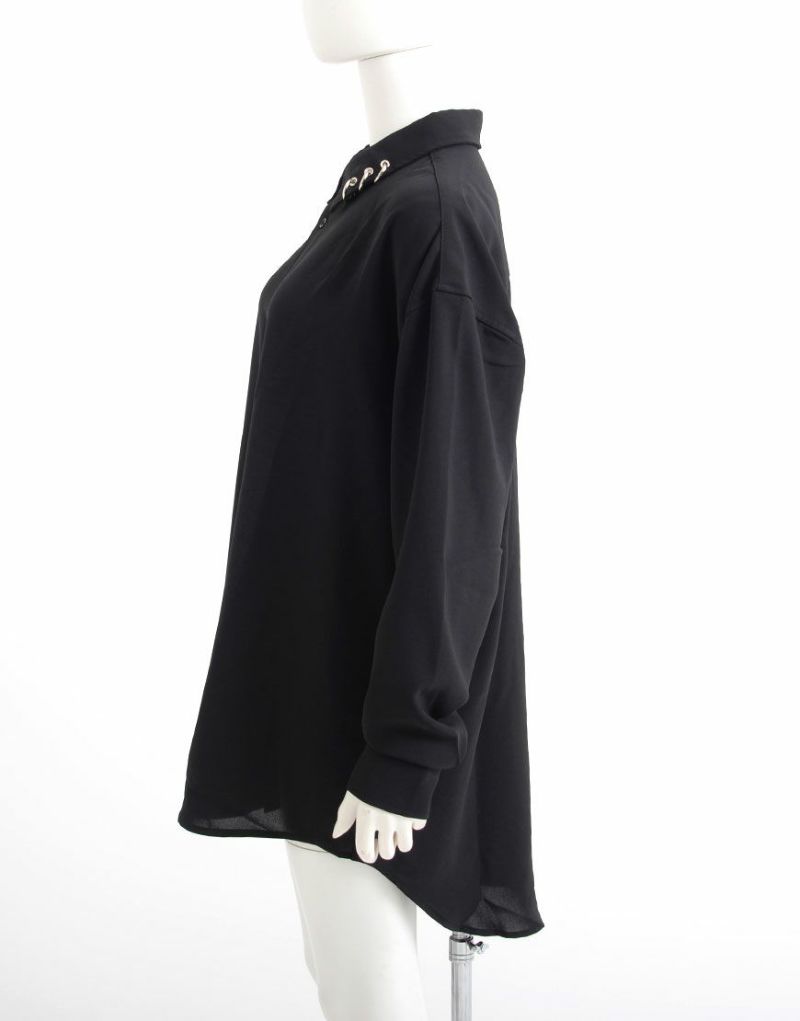 ililil【イルイルイル】より『明月-blackshirt』が登場です。 襟のハトメにリングを配置したブラックカラーのオーバーサイズシャツ。 リングは取り外しできるのでアレンジ可能。 高級感のある生地感で仕上げ、 シンプルだからこそ生地や質感に拘りたい方に贈るアイテム。 メンズ、レディース問わずユニセックスでご着用頂けます。 #ユニセックス #オーバーサイズ #ジェンダーレス #長袖シャツ #モード #モノトーン #ブラックコーデ #ハトメ #リング