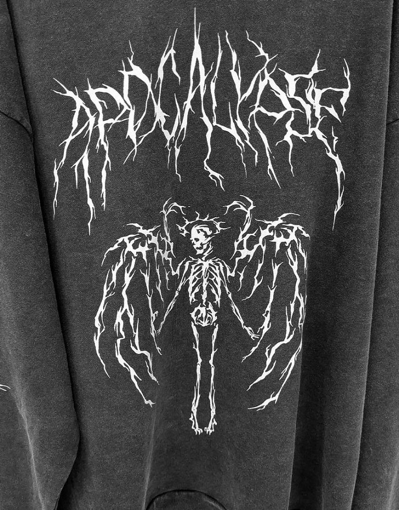 フロントにスカルモチーフのグラフィックがプリントされたスウェット。