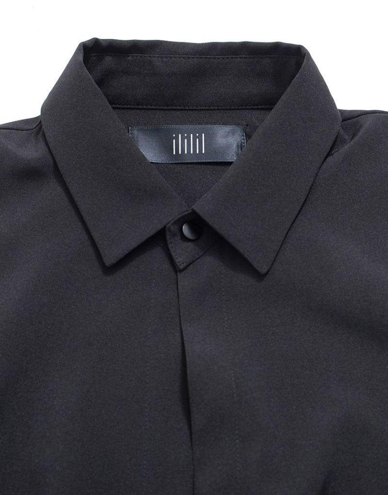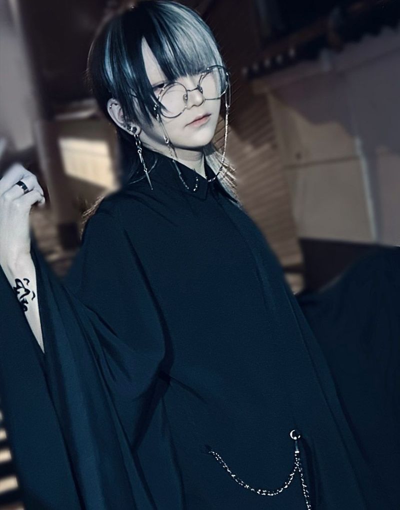 ililil【イルイルイル】より【夜宵烏雷】着物風シャツが登場です。 一枚で存在感抜群の着物袖シャツ。 夏でも着やすいさらりとした生地です。 甚兵衛のように内側はひもで結び、 フロントはチェーンで留める仕様になっています。 和装だけではなく、モードなコーデにもおすすめです。 高級感のある生地感で仕上げ、 シンプルだからこそ生地や質感に拘りたい方に贈るアイテム。 #ユニセックス #ジェンダーレス #ブラックコーデ #モード #シャツ #トップス #和装