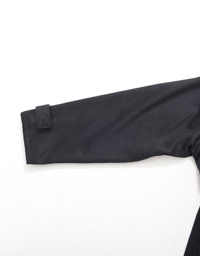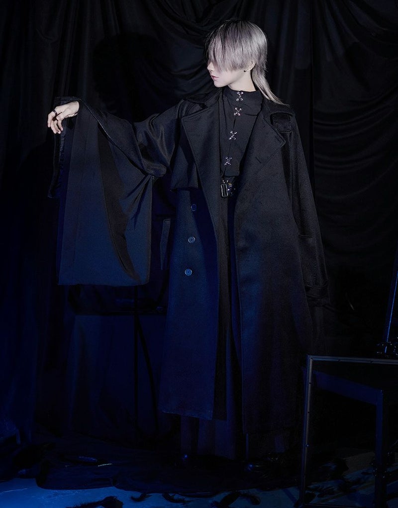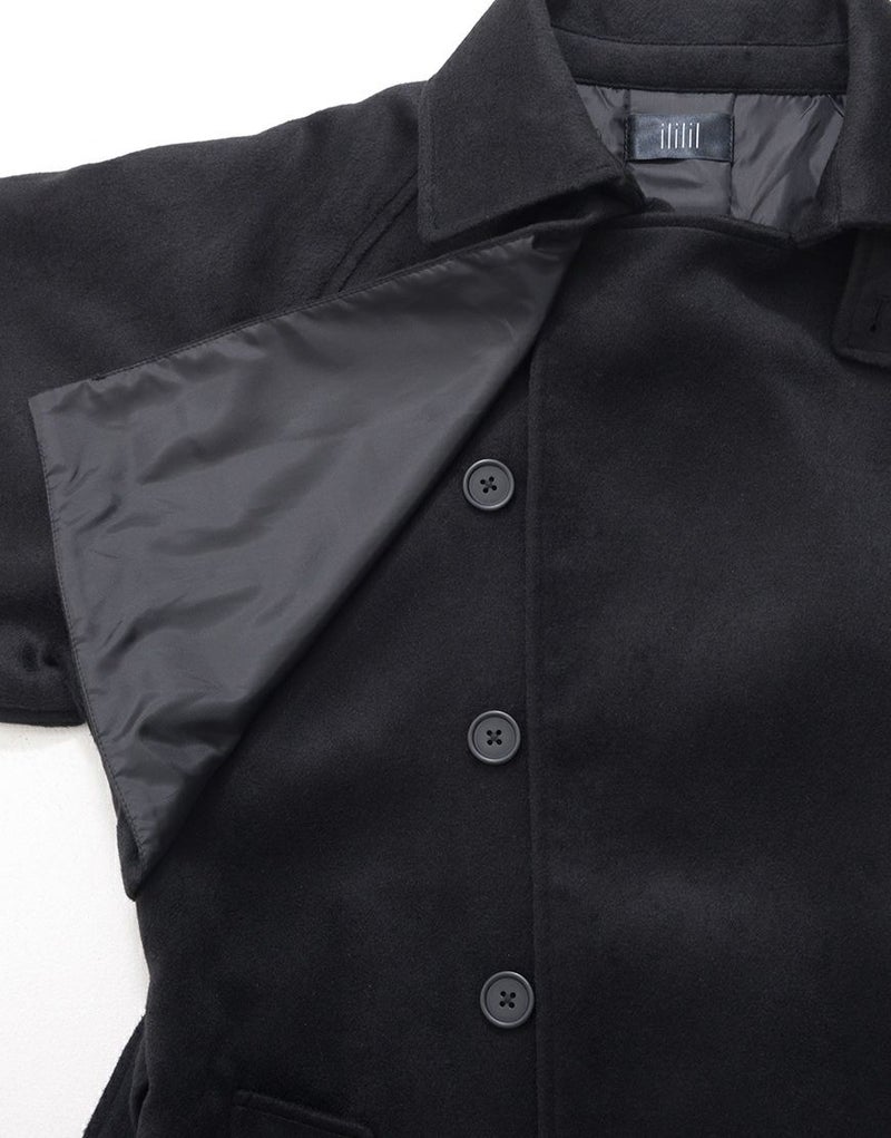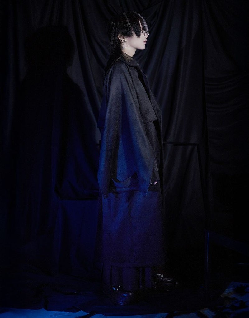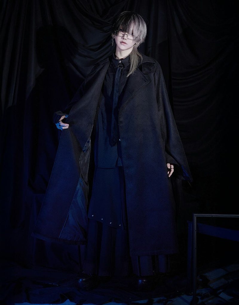 ililil【イルイルイル】より【燈影夢界】ロングコートが登場です。 フェイクメルトン生地を使用したインパクト抜群のロングコートです。 メルトン素材は、ウールに似た風合いと柔らかさを持ちながらも、軽量で扱いやすく、暖かさも抜群。 袖にはファスナーが付いており、開閉することでマント風にもアレンジ可能。 幅広いシルエットのアイテムにも対応でき、重ね着やレイヤードコーディネートを楽しむことができます。 キレイめかつモードな雰囲気で、レディース、メンズ問わず着用可能です。