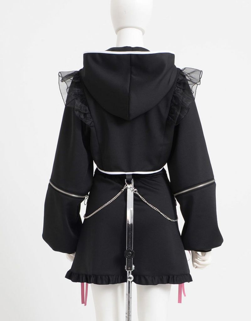 スカートにはフロント左右にレースアップデザインを施し地雷感を演出しました☆