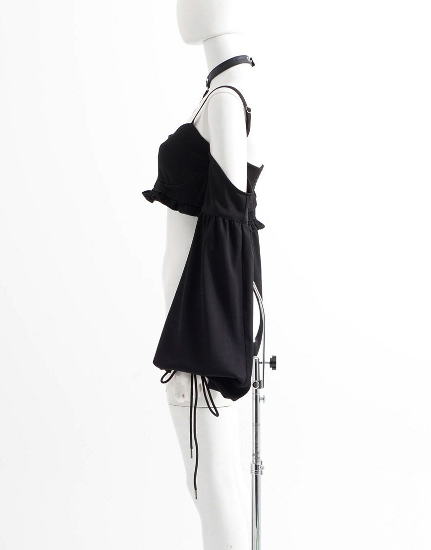 取り外し可能なチョーカーや、裾のフリルなど細部までこだわったディテールで、甘さと毒っぽさの絶妙なバランスに仕上げました。