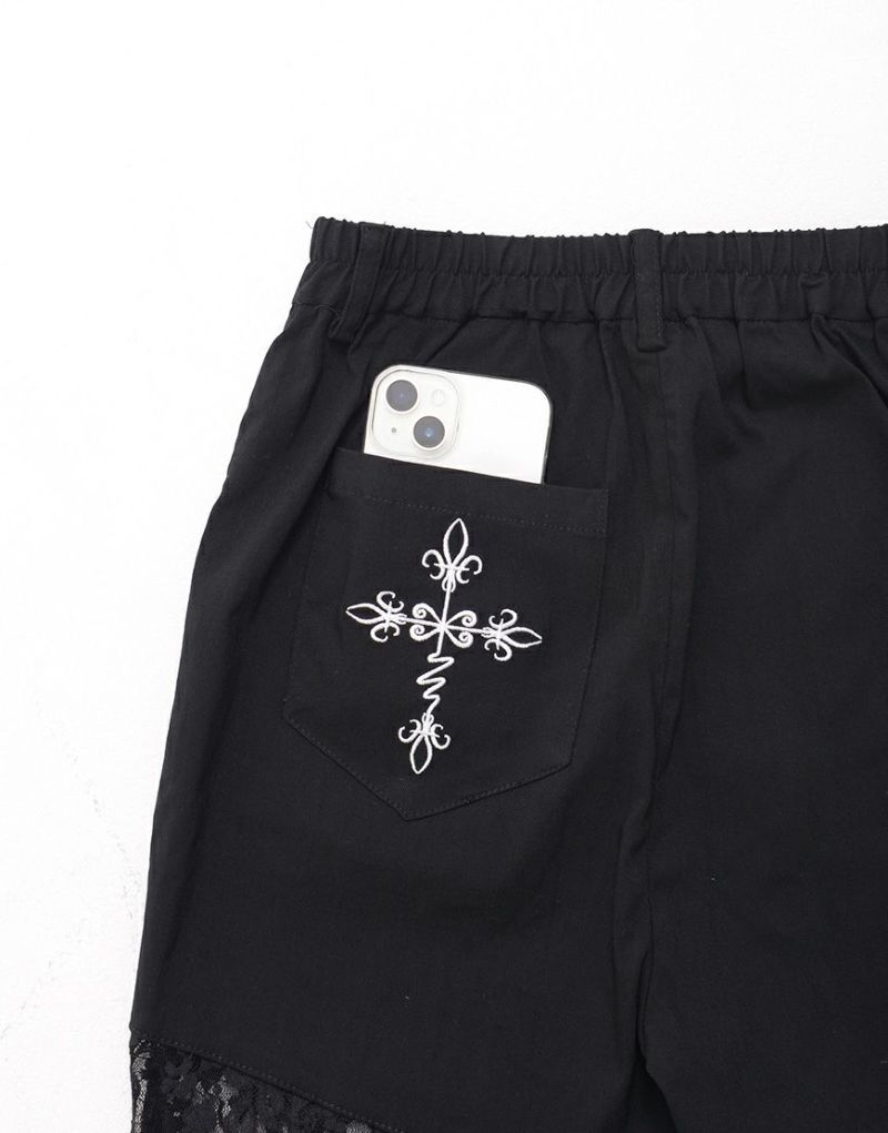 ヒップポケットには十字架の刺繍入りで、後ろ姿まで抜かりなし。
