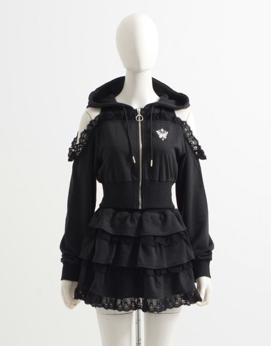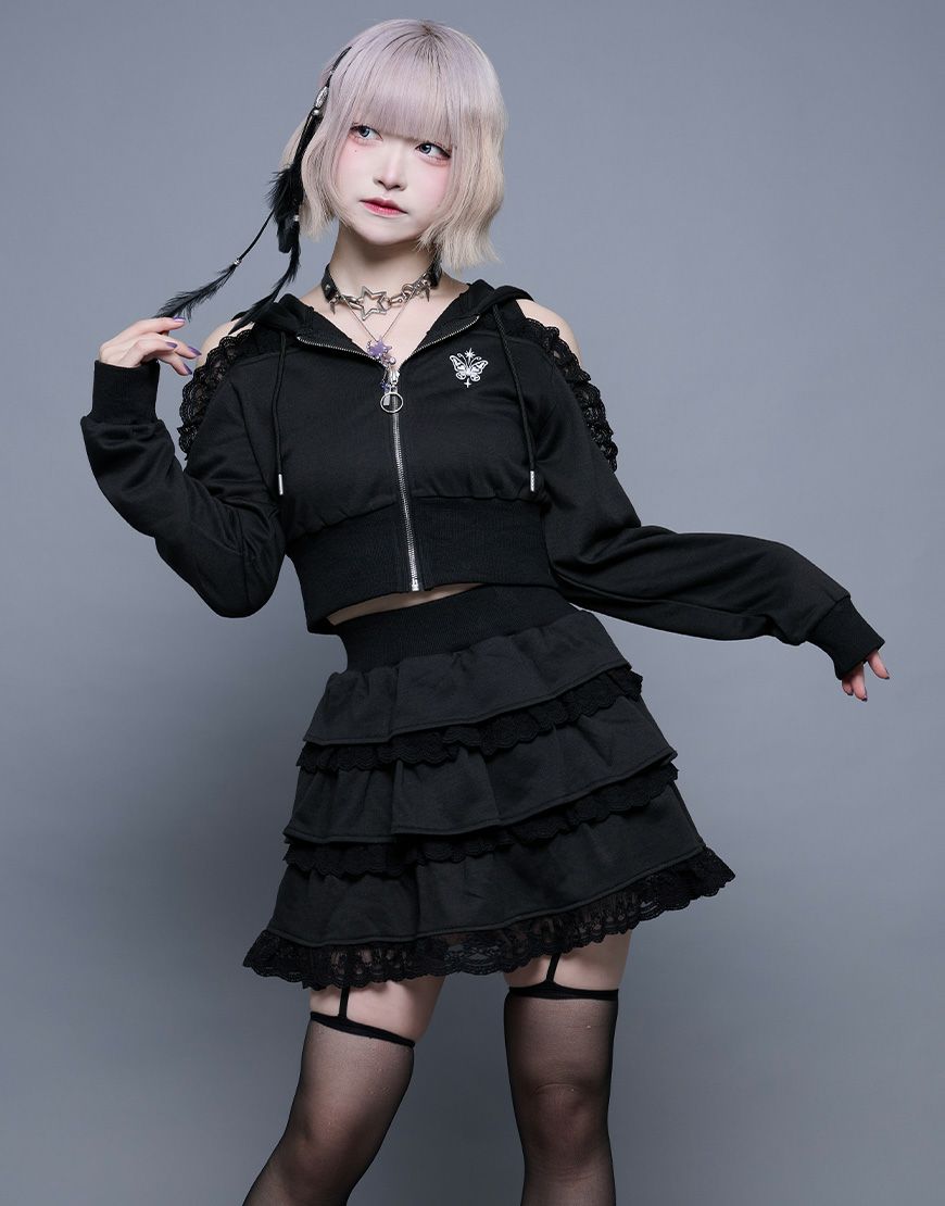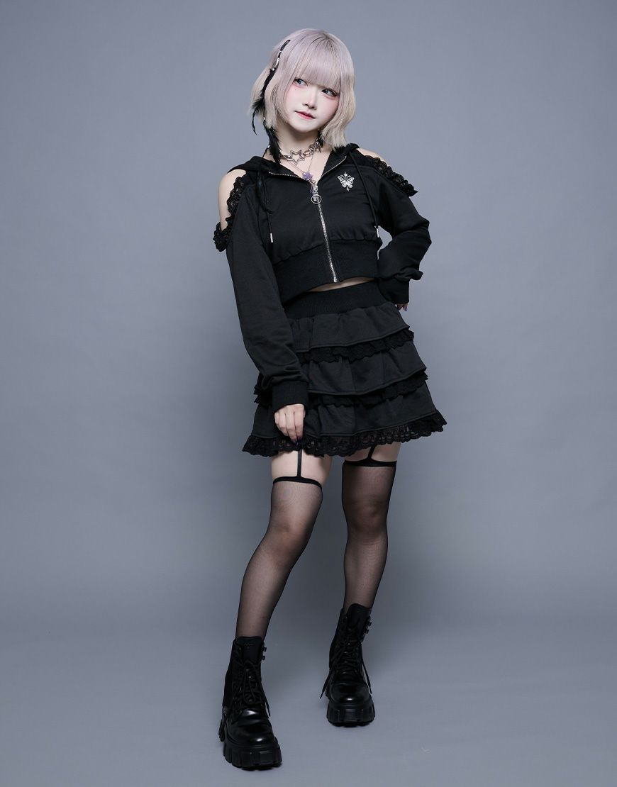 ililil【イルイルイル】より、†ぴえん卒業†スウェットパーカー&ティアードスカートセットが登場です。