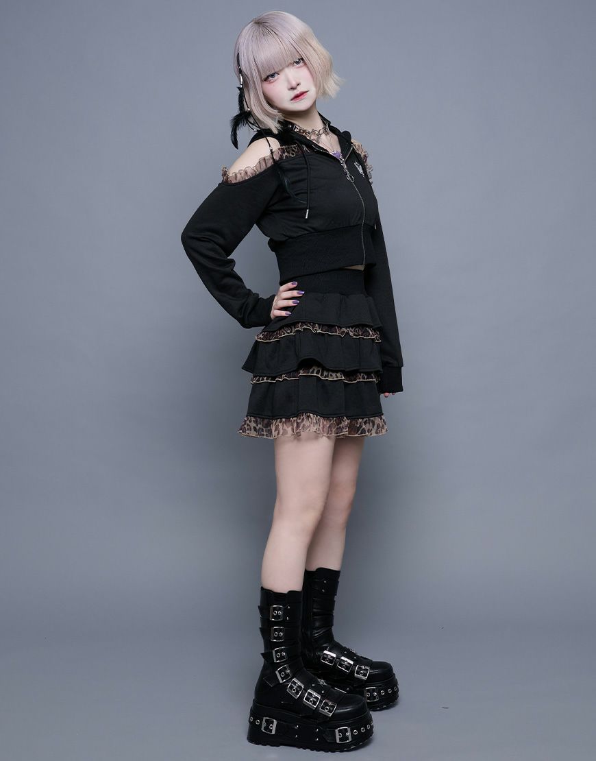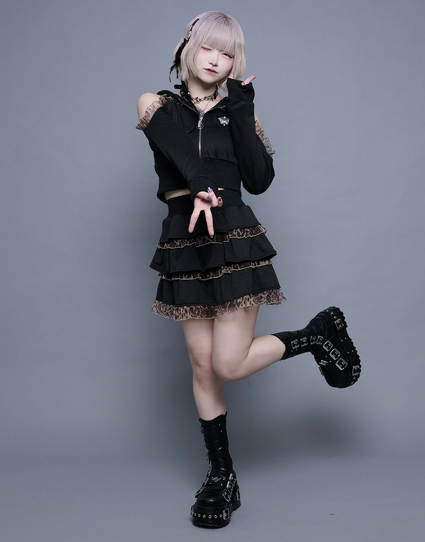 黒レースは王道の地雷系に、ヒョウ柄は平成ギャル感をプラスして、今っぽい攻めコーデが完成。