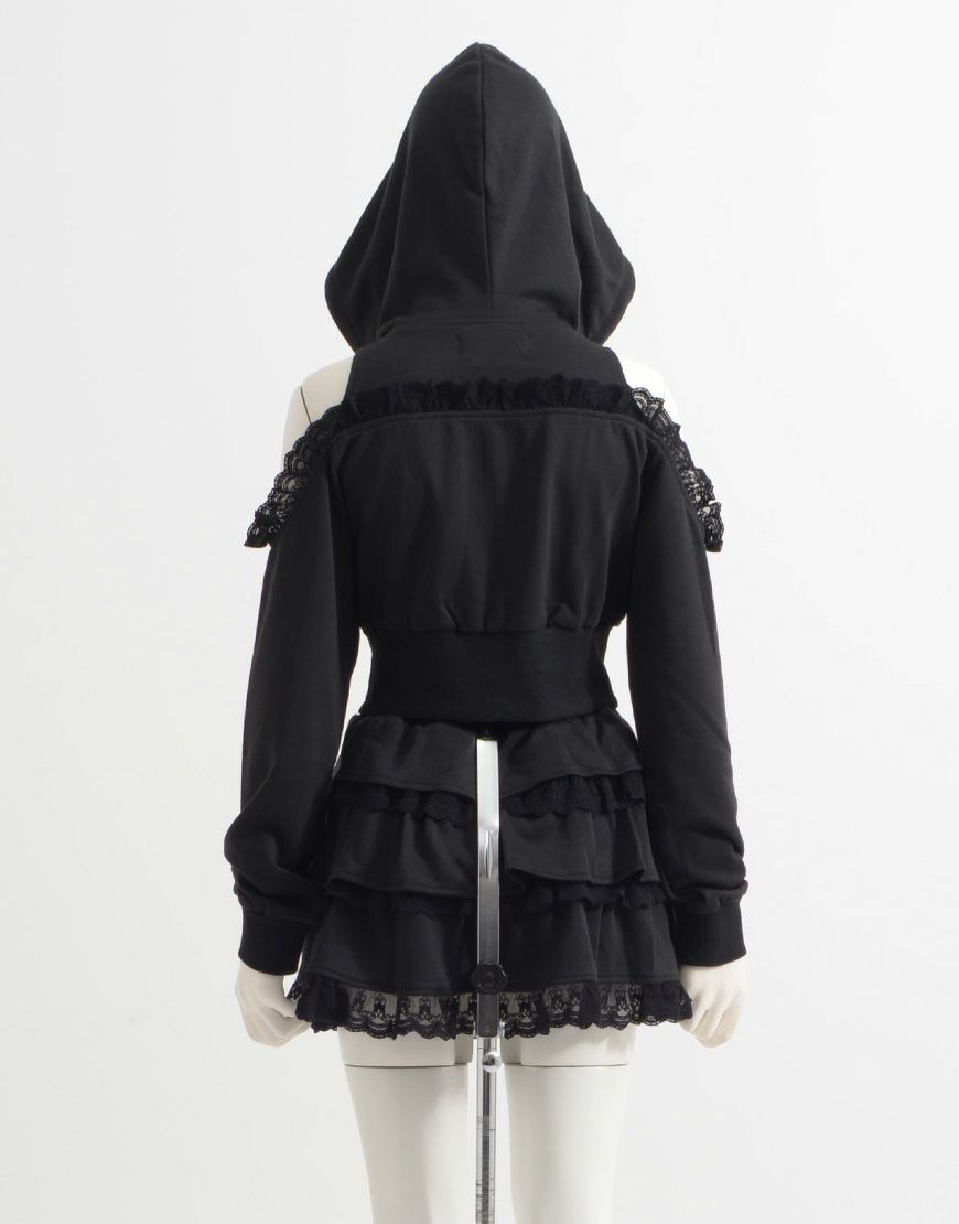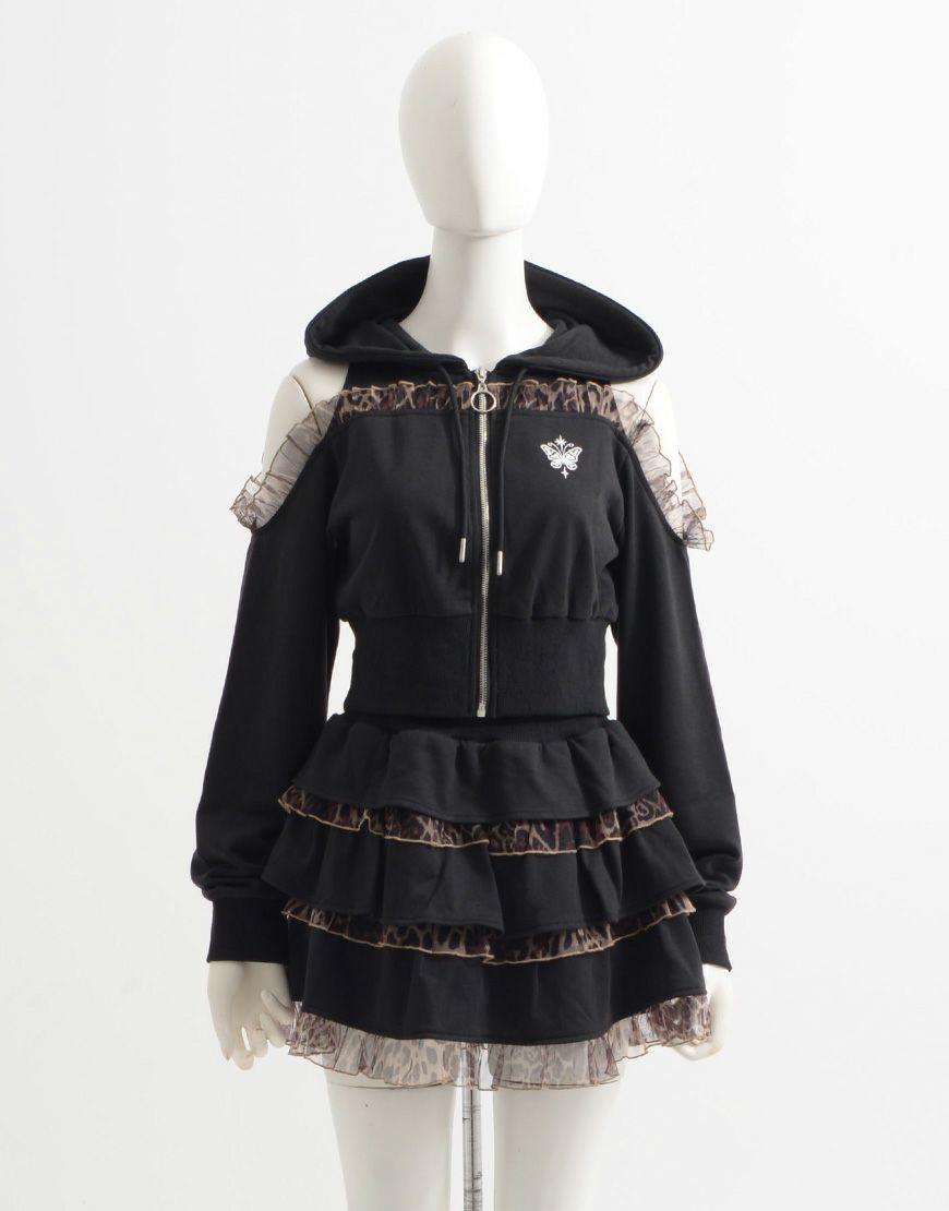 肩あきフリルのスウェットパーカーと、ティアードフリルが映えるティアードスカートで、