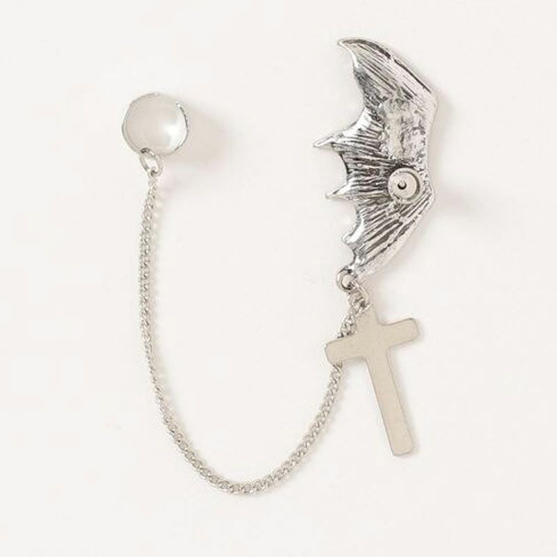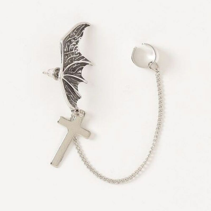 NOVESSELからチェーン付きイヤーカフ+デザインピアスが登場しました。 チェーン付きイヤーカフとデザインピアスが連結された個性派アクセサリー。 ロック系のスタイリングは勿論、ピープス系やストリートスタイルのアクセントにもおすすめ◎ ユニセックスとしても着用可能ですので、是非お試しください! ※モデル画像は照明などの影響により実際の商品と異なる場合がございます。
