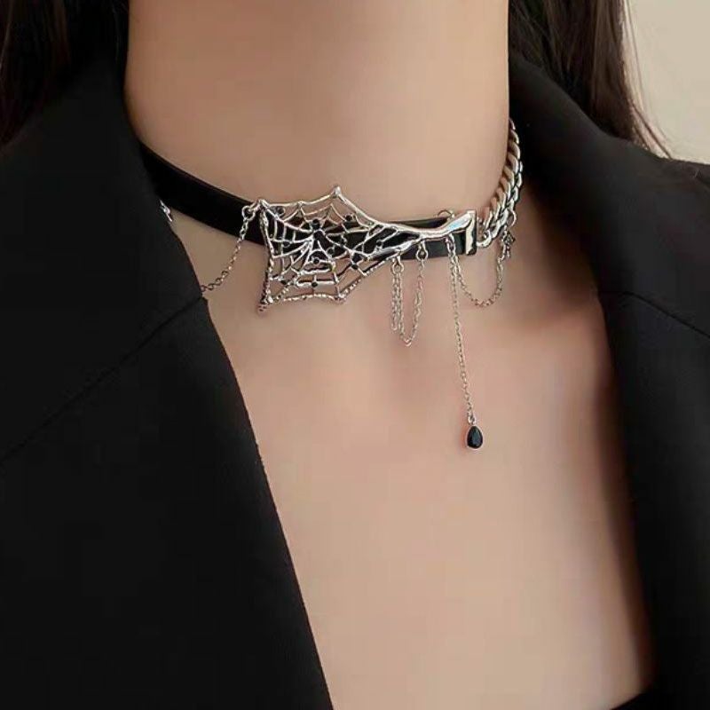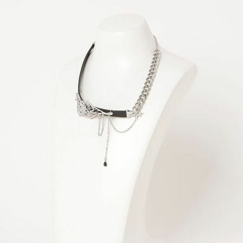 NOVESSELからスパイダーチョーカーが登場。 マットなフェイクレザー素材に、チェーンとスパイダーネットの装飾。 首元のオシャレには欠かせなくなってきたチョーカー。 キレイめやストリートスタイルのアクセントにもおすすめ◎ オフショルなどの首周りがスッキリと見えるコーデと特に相性抜群です。 コーデにインパクトを与えてくれる一品となっております。 ※モデル画像は照明などの影響により実際の商品と異なる場合がございます。