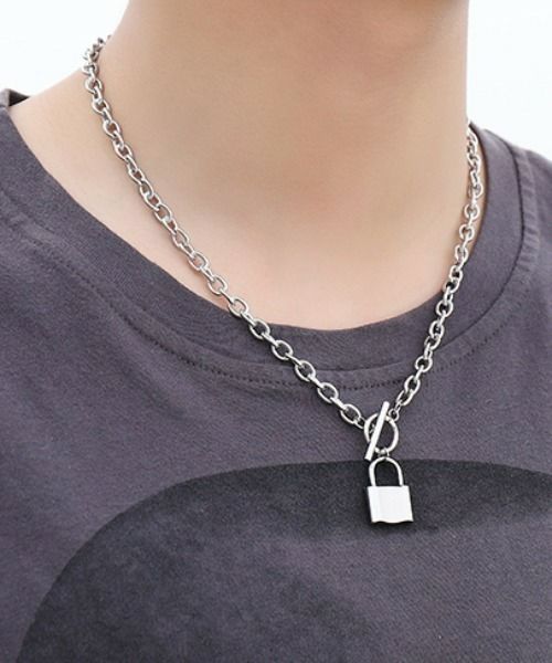 NOVESSELからキーロックネックレスが登場。シンプルな南京錠デザインのチェーンネックレス。 ペンダント部分は小ぶりなので、ロック系は勿論、幅広いスタイリングにお使いいただけます! また丁度いい長さなので重ね着けもオススメです◎ ユニセックスとしても着用可能ですので、是非お試しください♪