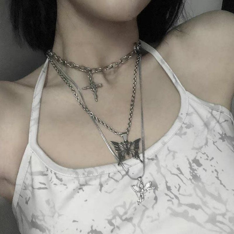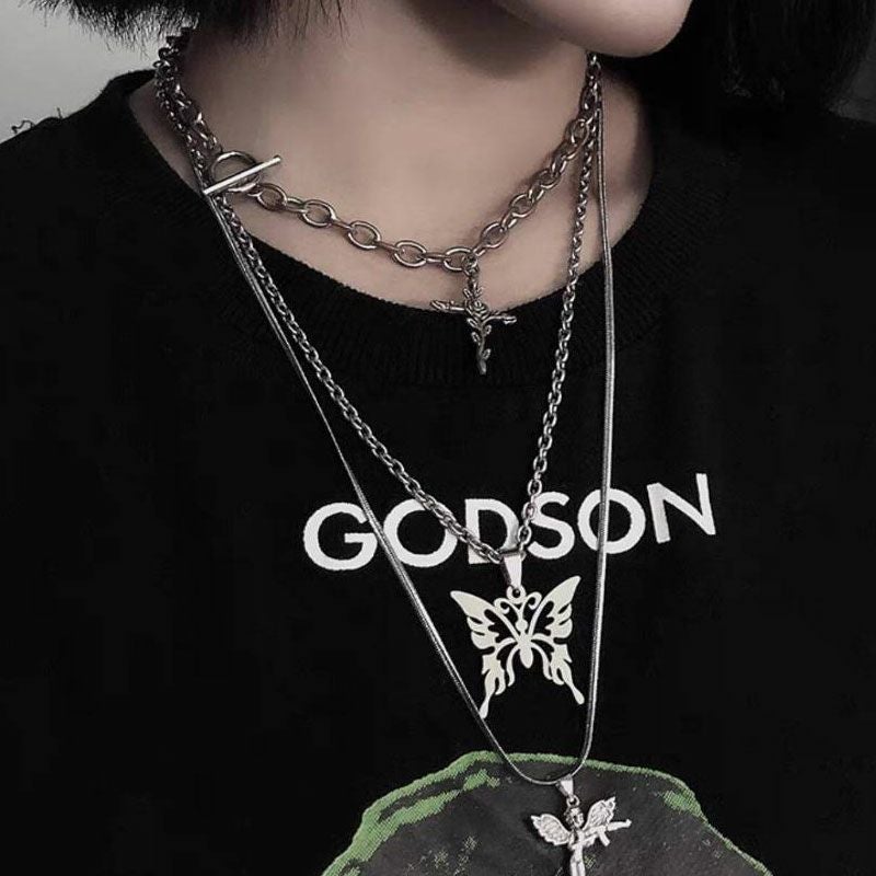 NOVESSELからトリプルチェーン ペンダントネックレスが登場。3本の異なるネックレスがセットになったペンダントネックレス。 1つ1つはシンプルですが、3本重ねることでボリューム感と華やかさを演出◎ また1本ずつ分けて使うこともできるので、様々なアレンジをお楽しみいただけます♪ ユニセックスとしても着用可能ですので、是非お試しください! ※モデル画像は照明などの影響により実際の商品と異なる場合がございます。
