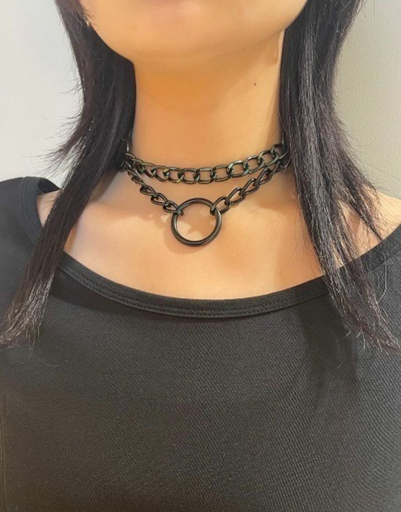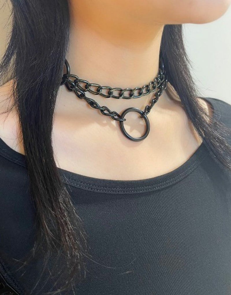 NOVESSEL【ノベセル】からリングチェーンチョーカーが登場。 マットなフェイクレザー素材に、リングやチェーンなどの装飾をあしらったチョーカー。 パンク、ロック系のスタイリングは勿論、キレイめやストリートスタイルのアクセントにもおすすめ◎ ユニセックスとしても着用可能ですので、是非お試しください! ※モデル画像は照明などの影響により実際の商品と異なる場合がございます。