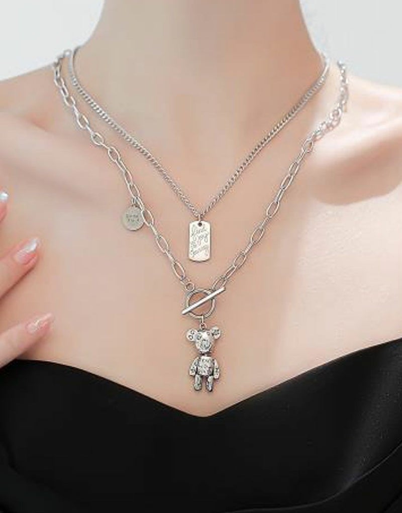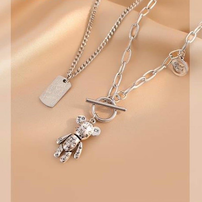 NOVESSEL【ノベセル】からくまデザイン2連ネックレスが登場。キュートなくまのネックレスとシンプルなプレートのネックレスがSETになったアクセサリー。 1本ずつ分けて使うこともできるので、様々なアレンジをお楽しみいただけます♪ ユニセックスとしても着用可能ですので、是非お試しください!
