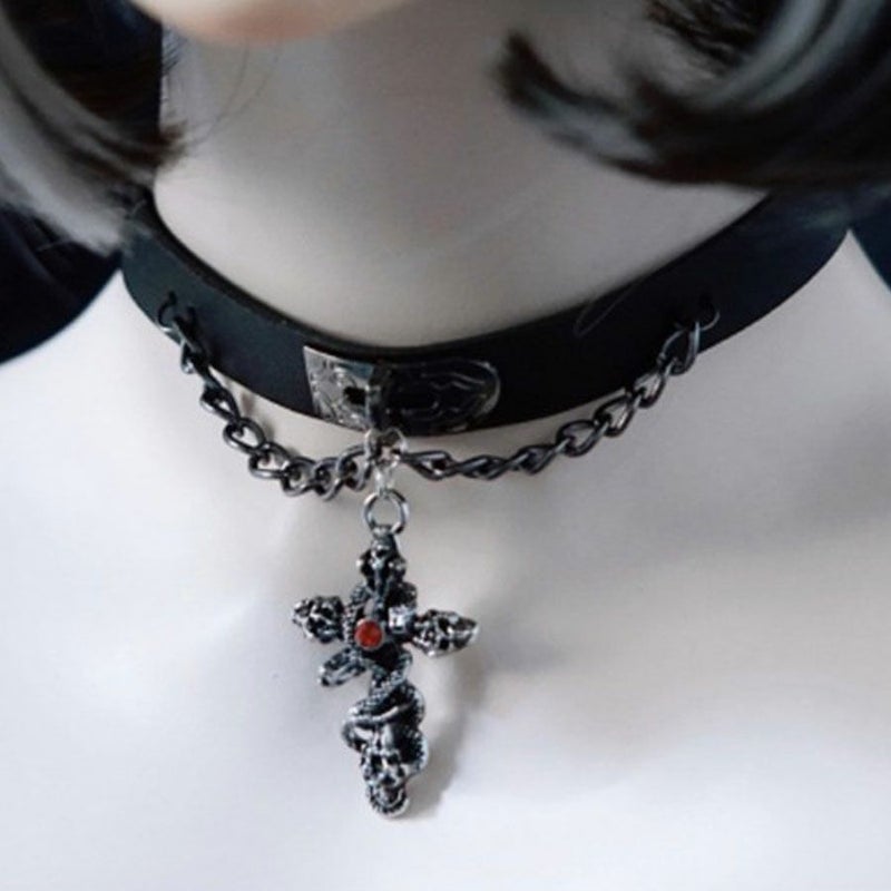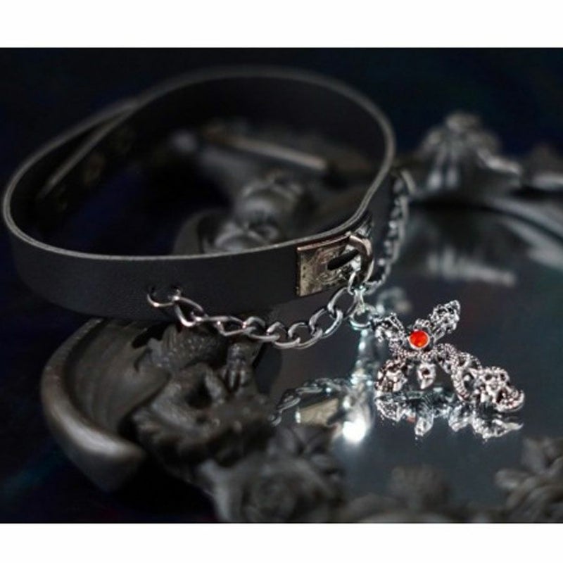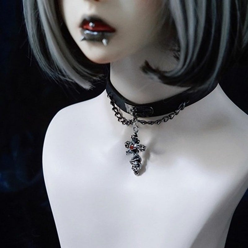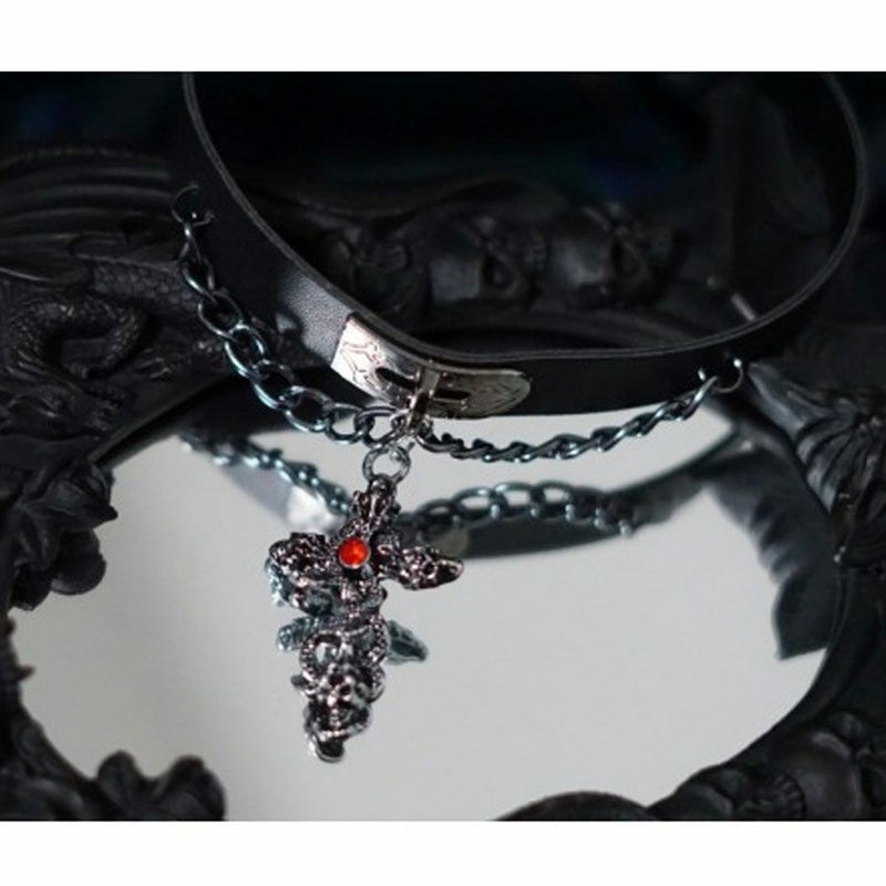 NOVESSELからチェーンクロスチョーカーが登場。 マットなフェイクレザー素材に、クロス+チェーンの装飾をあしらったチョーカー。 闇カワ、パンク、ロック系のスタイリングは勿論、ストリートスタイルのアクセントにもおすすめ◎ ユニセックスとしても着用可能ですので、是非お試しください! ※モデル画像は照明などの影響により実際の商品と異なる場合がございます。