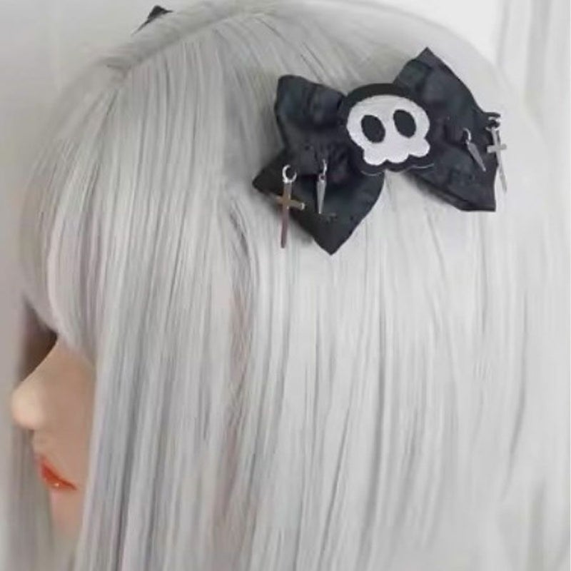 NOVESSEL【ノベセル】ドクロリボンヘアクリップ(1個単品)が登場しました。 スカルモチーフを使用したリボン型のヘアクリップ。 地雷系ファッションから闇可愛い系のスタイリングまで幅広くお使いいただけます♪ コーディネートのちょっとしたアクセントに是非お試しください!