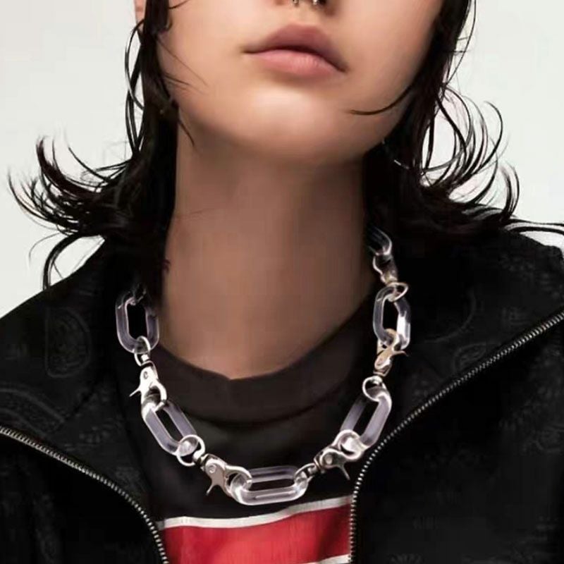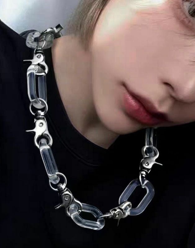 NOVESSELから太クリアチェーンネックレスが登場。トレンド感漂うクリアなアクリル素材がコーディネートをお洒落に演出してくれる太ネックレス。 ストリートをはじめ、様々なジャンルでお使いいただけます! ユニセックスとしても着用できますので、この機会に是非お試しください! ※モデル画像は照明などの影響により実際の商品と異なる場合がございます。