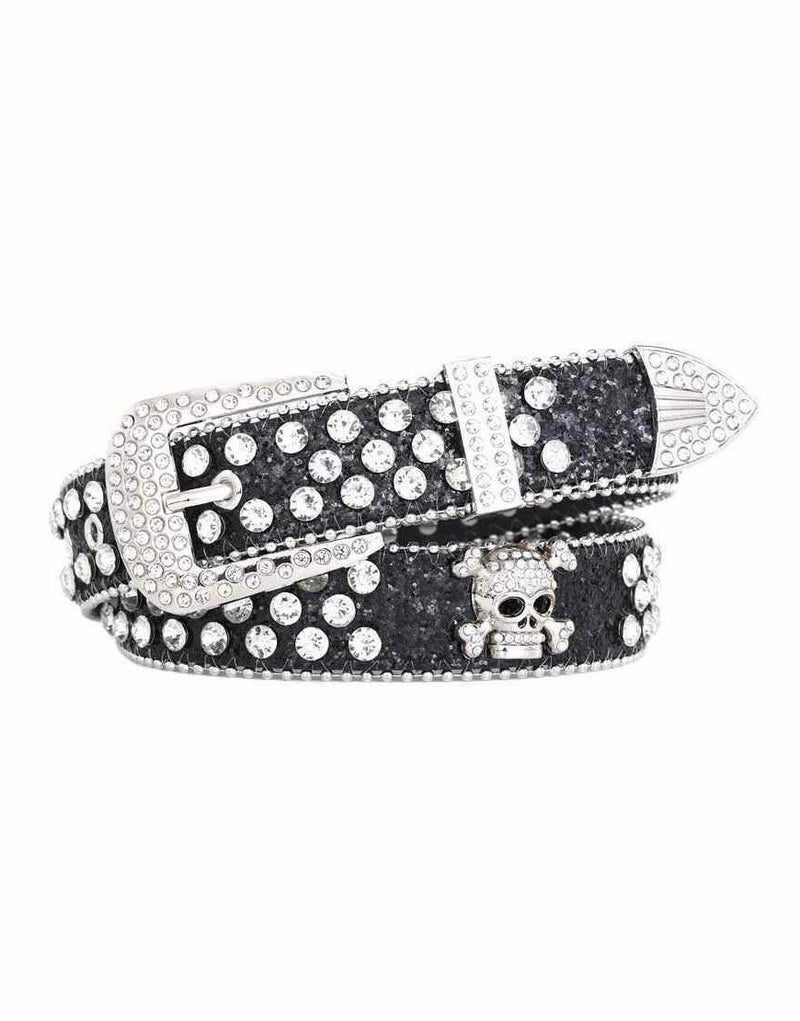 NOVESSEL【ノベセル】からスカルラインストーンベルトが登場しました。 たくさんのラインストーンを帯とバックル部分一面に装飾し、更にクロスボーンスカルをポイントで配置した豪華なベルト。 パンク、ロック系のスタイリングは勿論、ピープス系やストリートスタイルのアクセントにもおすすめ◎ ユニセックスとしても着用可能ですので、是非お試しください! ※モデル画像は照明などの影響により実際の商品と異なる場合がございます。