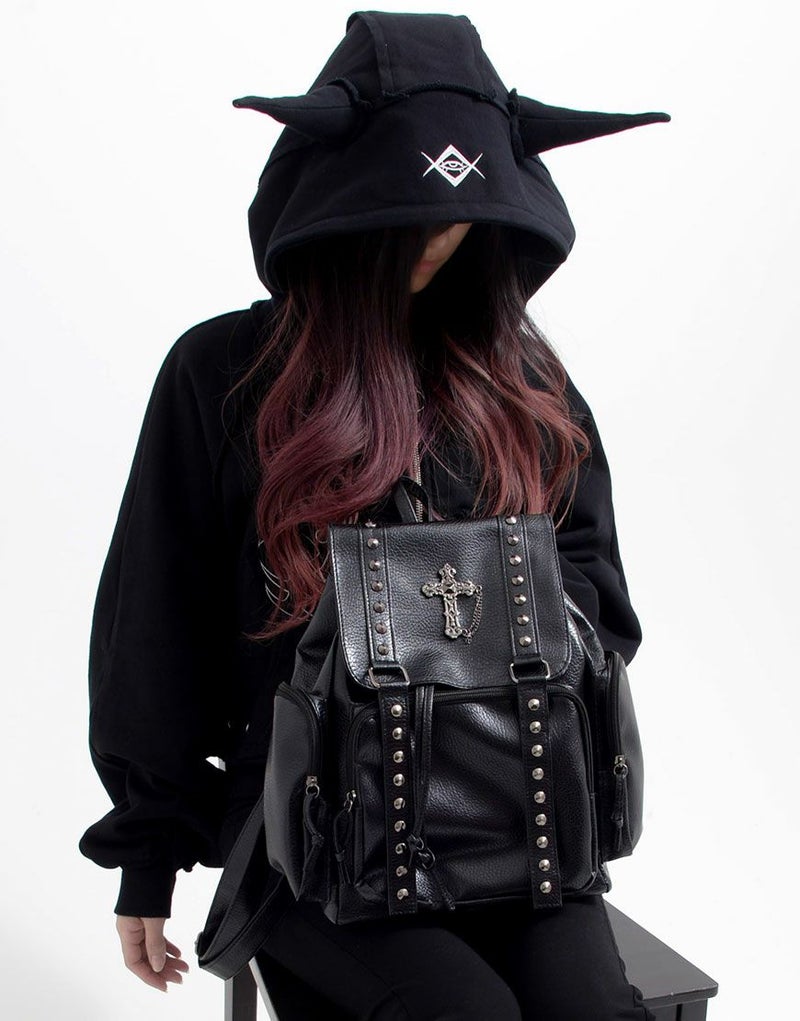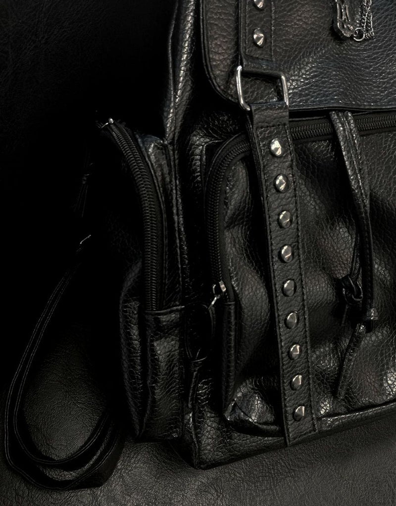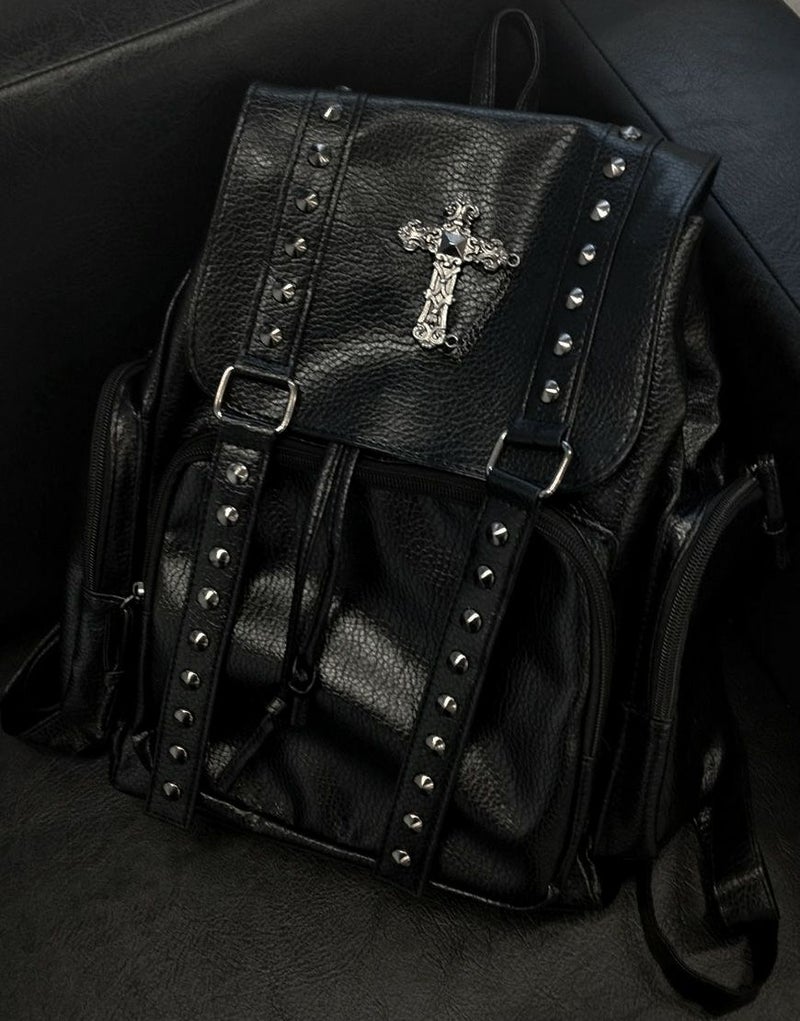 NOVESSEL【ノベセル】からクロスデザインバックパックが登場。フラップ部分に配置されたクロスモチーフにスタッズ付きの飾りベルトが存在感抜群のリュック。 コンパクトなサイズ感が可愛らしさを演出。 素材はPUレザーなので雨で痛む心配もありません。 お出かけや通勤通学にぜひご活用ください! ※モデル画像は照明などの影響により実際の商品と異なる場合がございます。