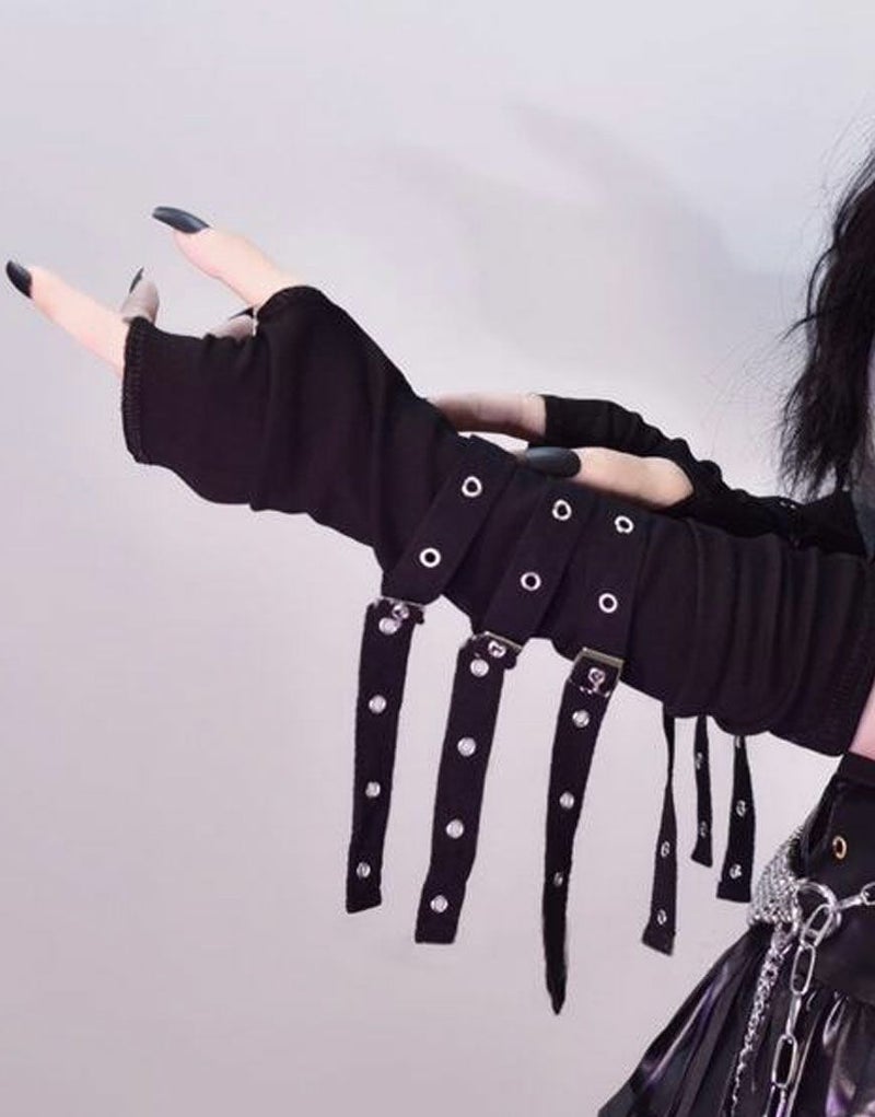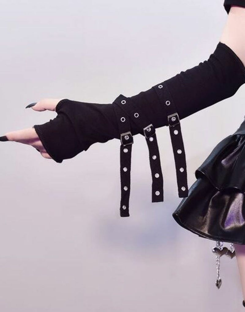 NOVESSEL【ノベセル】からベルトアームウォーマー(両手2個セット)が登場しました。 ベルト使いが目をひくアームカバー。 ストリート、パンクスタイルは勿論、闇カワ系にも相性抜群◎ ユニセックスとしてもお楽しみいただけますので、是非お試しください!