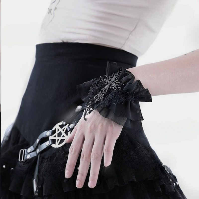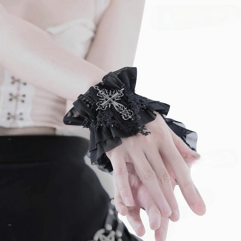 NOVESSEL【ノベセル】からクロスレースアームカバー(両手2個セット)が登場しました。 透け感のあるシースルー素材を使用。ビッグサイズのクロストップを配置して退廃的なデザインを表現した病カワアイテム。 この機会に是非お試しください! ※モデル画像は照明などの影響により実際の商品と異なる場合がございます。