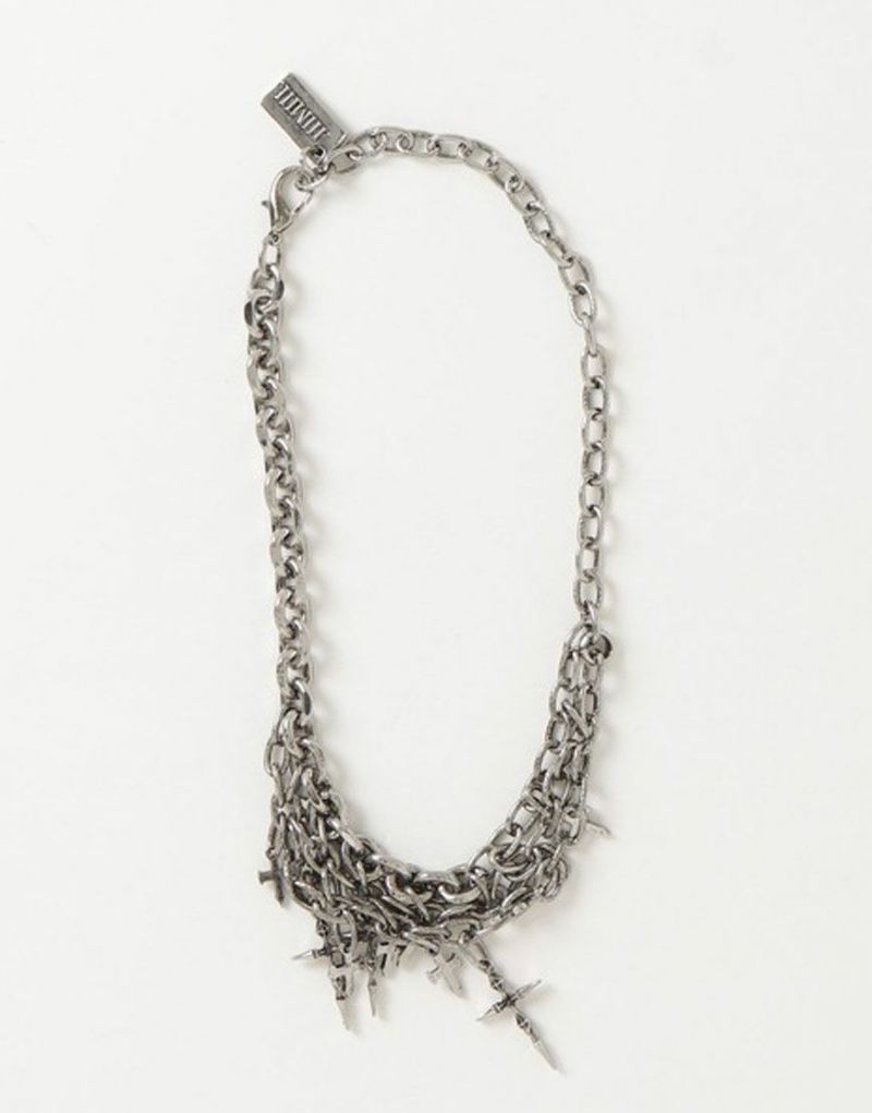 重なり合うチェーンに、無数のクロスモチーフを垂らしたインパクト抜群のネックレス。