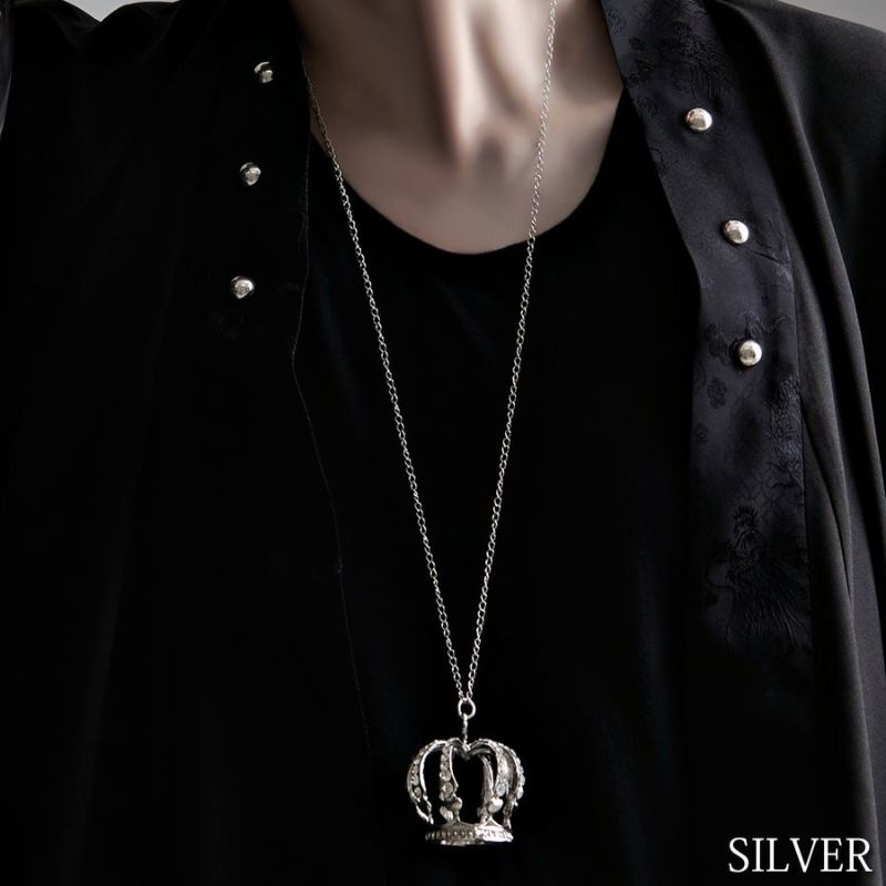 NOVESSEL【ノベセル】からビッグクラウンネックレスが登場。 ビッグサイズのクラウンモチーフが目をひくデザインネックレス。 ストリート、ロック、ゴシックスタイルをはじめ様々なスタイリングに相性抜群◎ ユニセックスとしても着用可能ですので、是非お試しください! ※モデル画像は照明などの影響により実際の商品と異なる場合がございます。