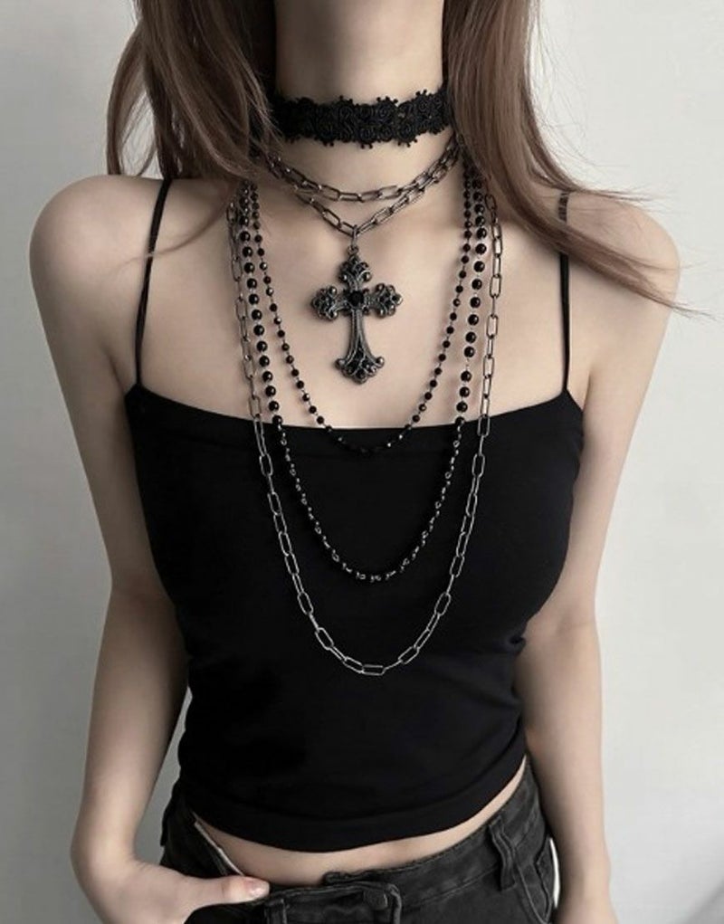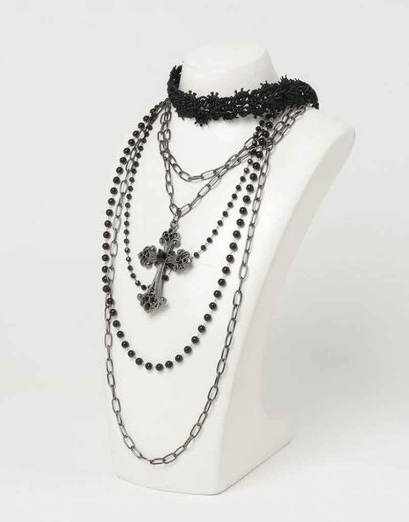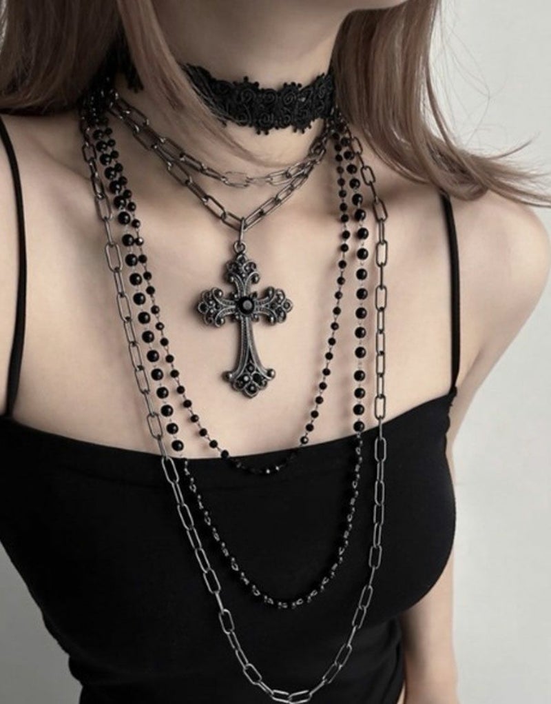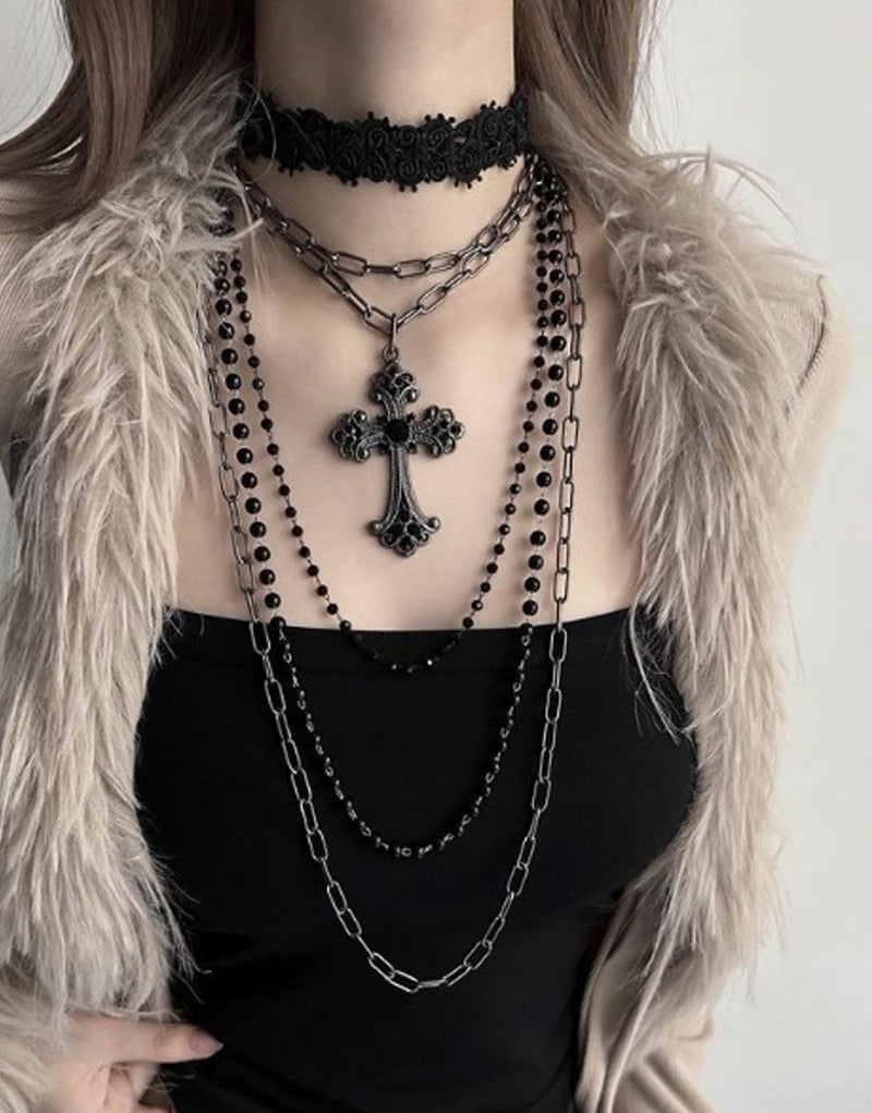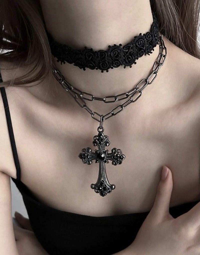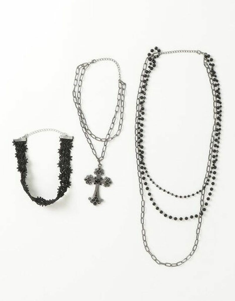 NOVESSEL【ノベセル】から多連クロスチョーカーが登場。2つのネックレスと1つのチョーカーがセットになっているアクセサリー。 ブラックとアクセサリーのシックなデザインが大人な印象になります。 つける組み合わせを変えて、違った雰囲気を演出できます。 ※モデル画像は照明などの影響により実際の商品と異なる場合がございます。