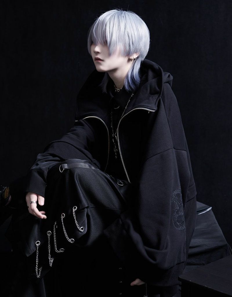 ililil【イルイルイル】より【蛇昇華界】着物パーカーが登場です。 肩から袖口にかけて広がっている袖に、 蛇と華の刺繍が施されたジップアップパーカー。 首元にはDカンにタッセルのついた豪華なデザイン。 ハイネックになっているので開けたり閉めたりで印象変化も楽しめます。 程よいゆとりのあるサイズ感で着やすさも抜群です。 #ユニセックス #パーカー #フーディー #ブラックコーデ #オーバーサイズ #ジップアップ #ハイネック