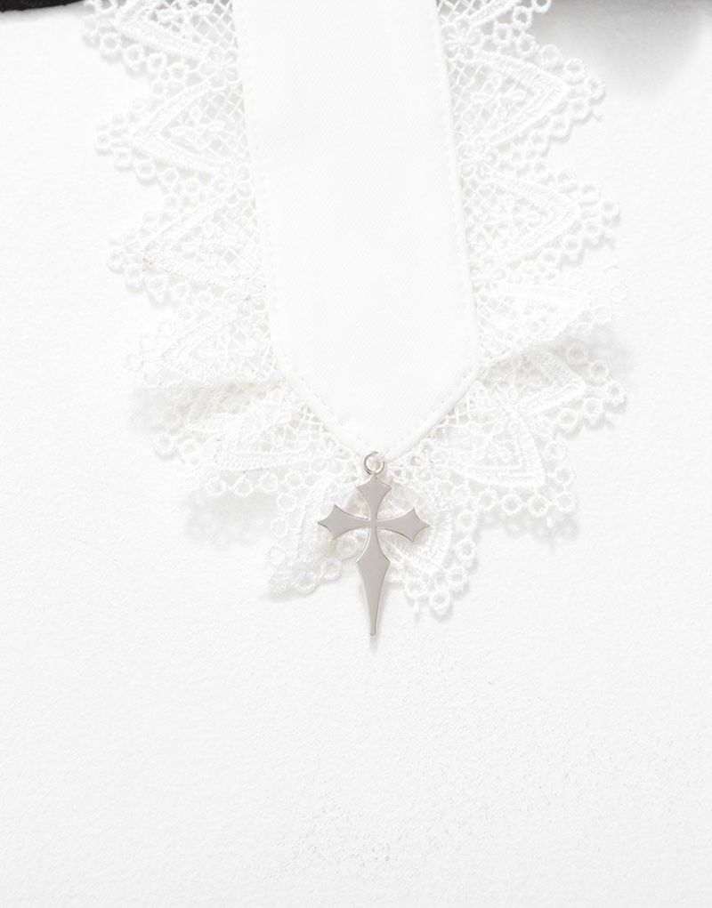 フロントの取り外し可能な襟には十字架のチャームが付いています。
