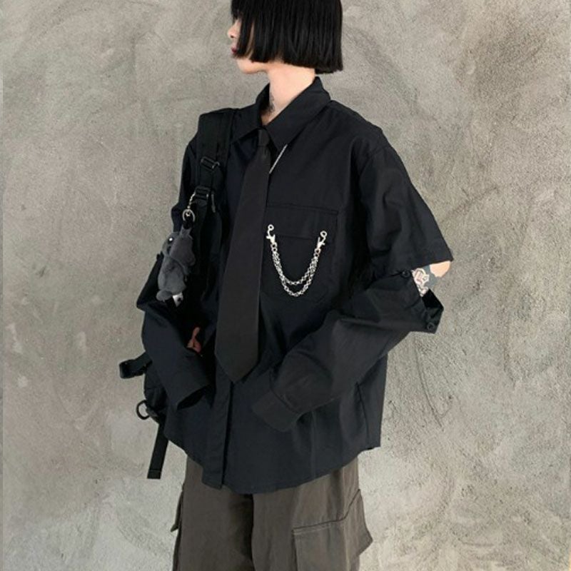 NOVESSELからネクタイ付き長袖シャツが登場しました。 袖セパレート仕様が特徴的なネクタイ付きシャツ。 胸元にはチェーンをあしらい、装飾にも拘ったデザインに。 様々な着こなしをお楽しみいただける個性派の1着となっています。 ユニセックスでの着用も可能です。 ※モデル画像は照明などの影響により実際の商品と異なる場合がございます。